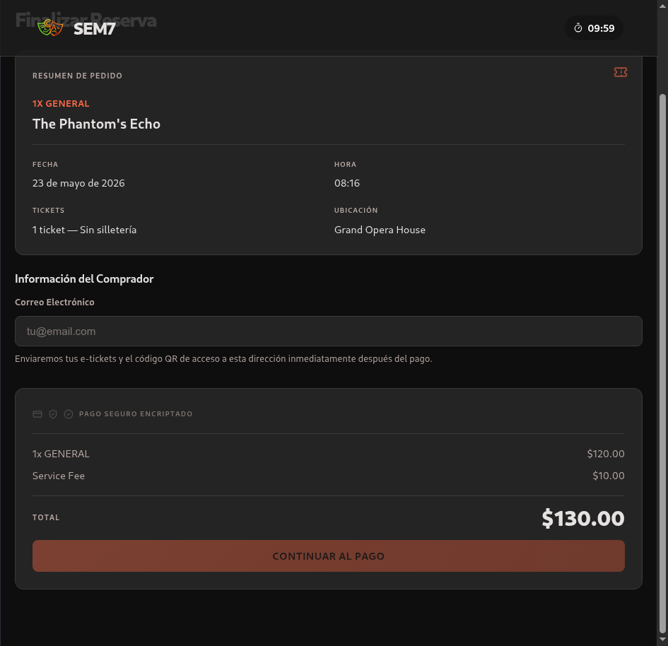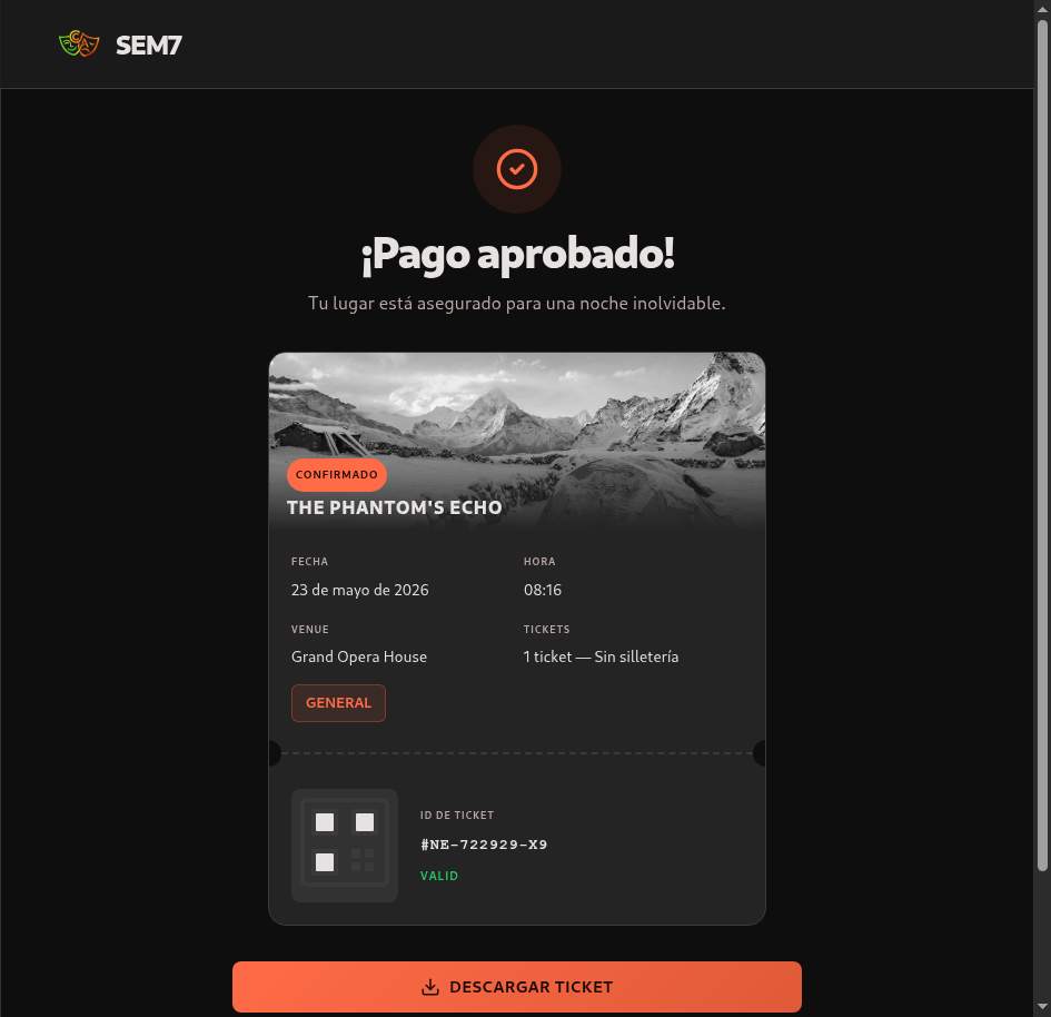 > Invitado visualiza el ticket confirmado tras una compra exitosa