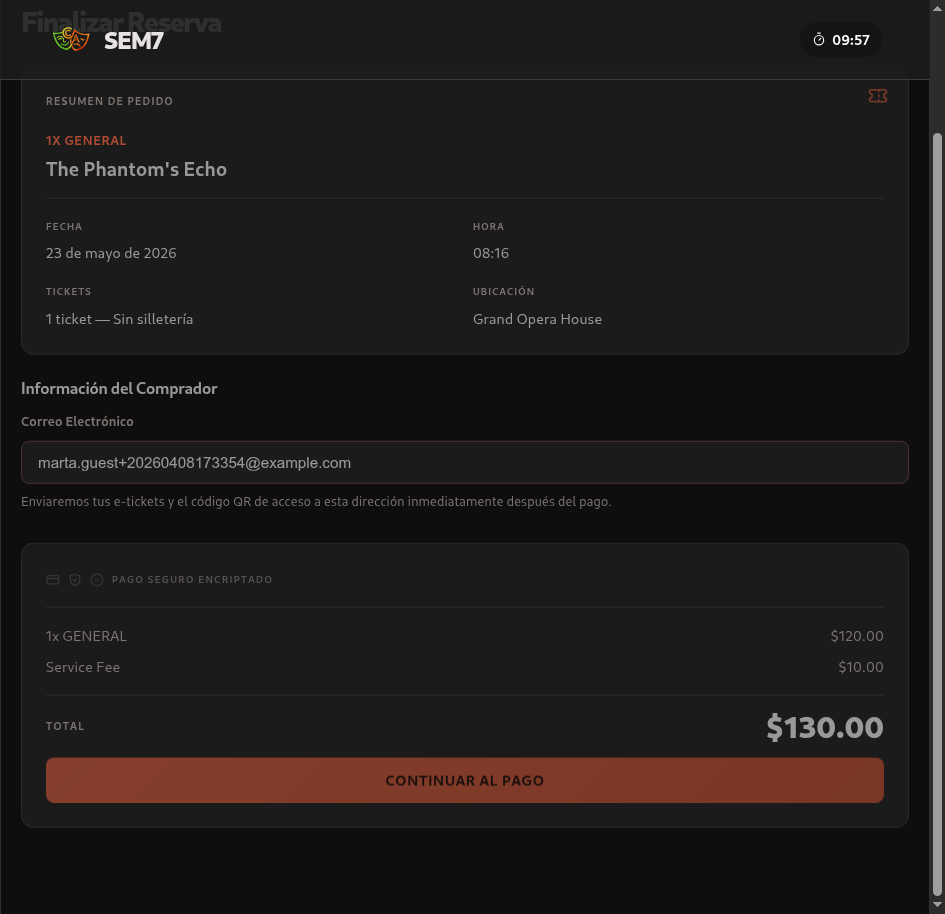 Invitado visualiza el ticket confirmado tras una compra exitosa