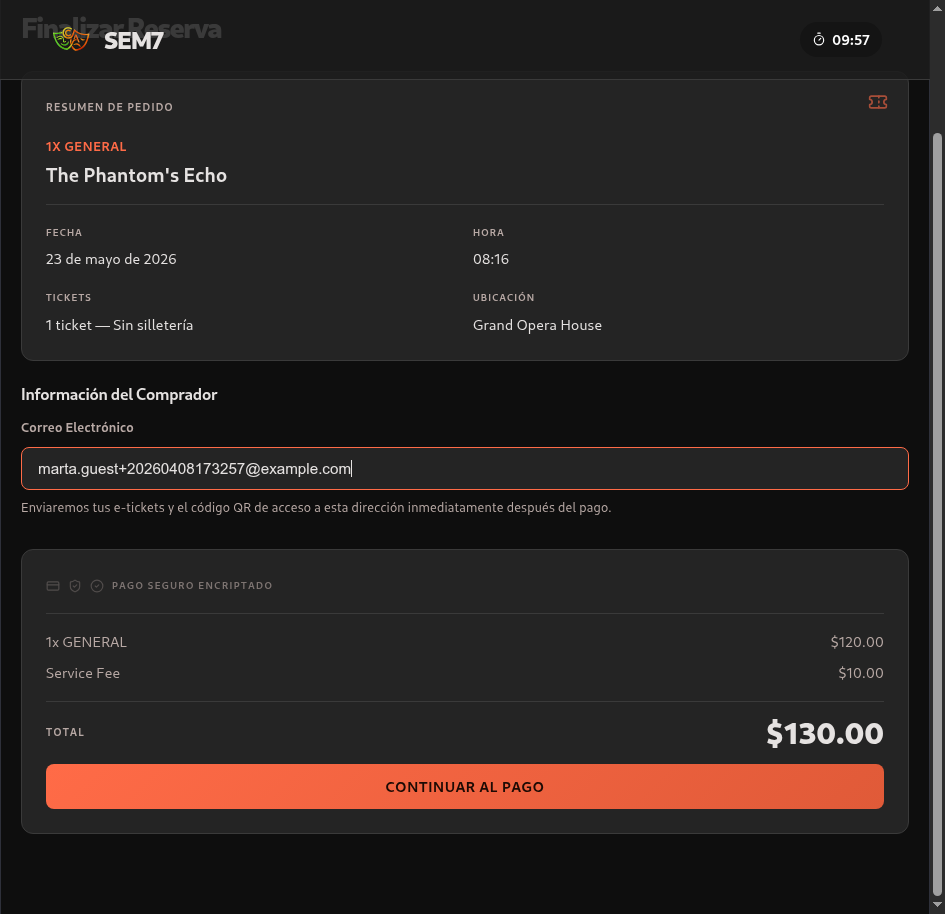 > Invitado completa el flujo de compra exitosamente de principio a fin