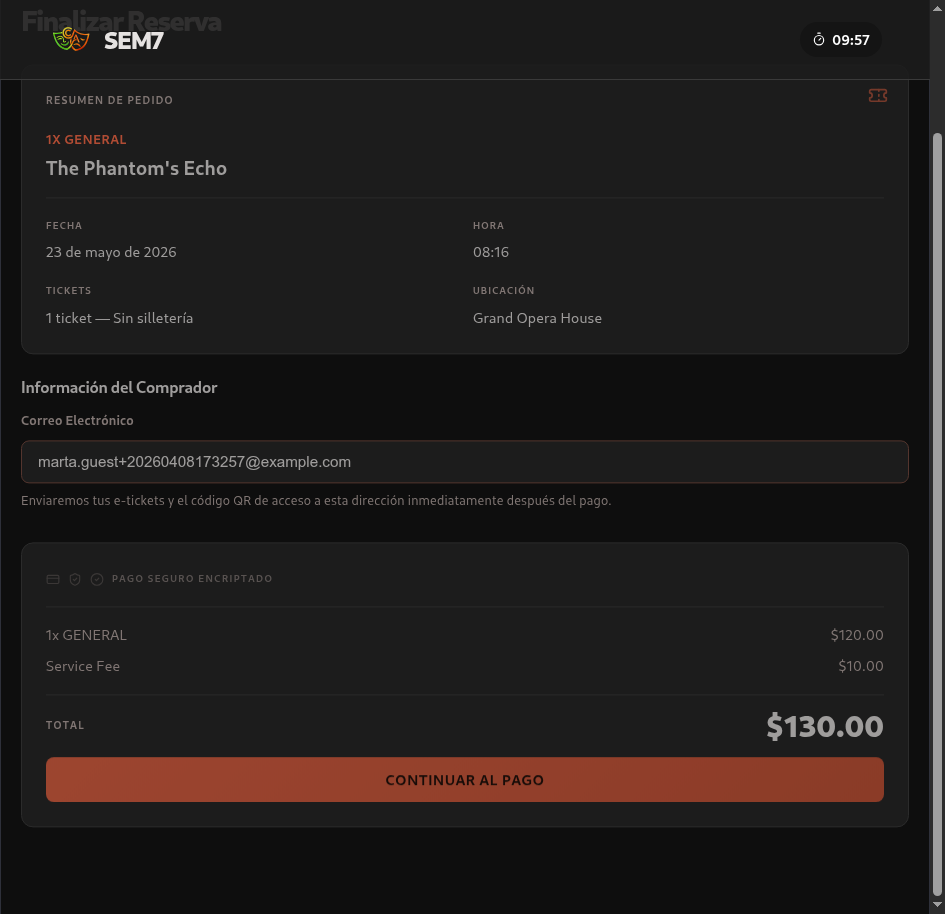 Marta ingresa el correo 'marta.guest+20260408173257@example.com' en el checkout