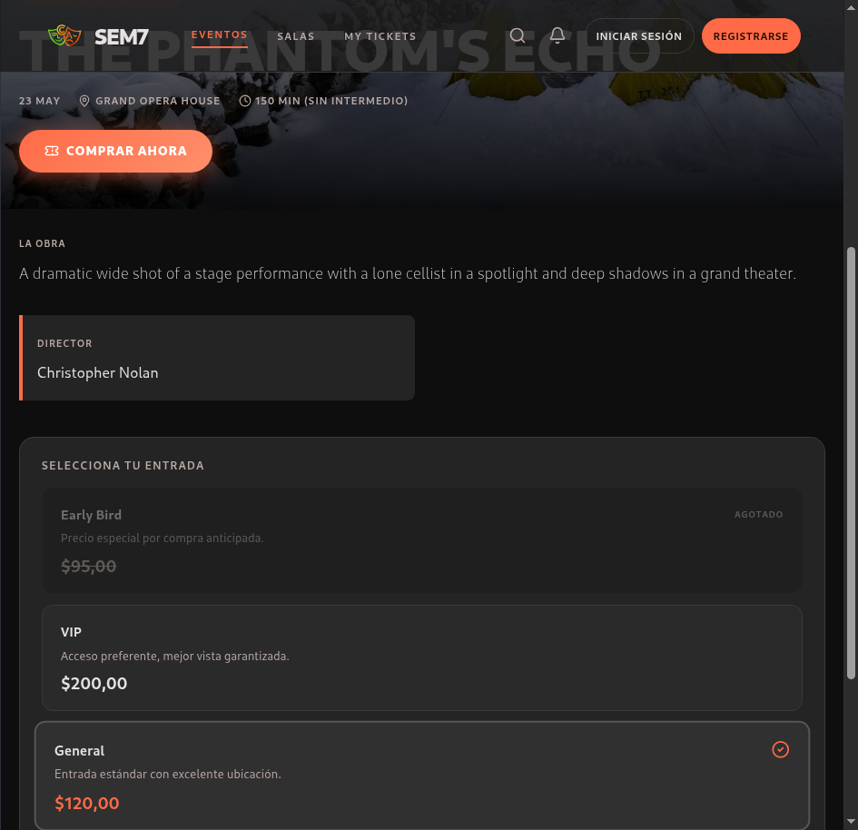 Marta clicks on tarjeta del evento 'The Phantom's Echo'