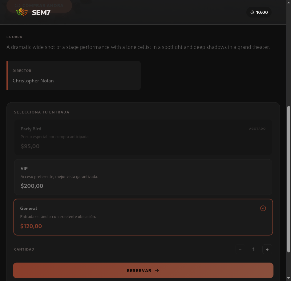 Visibilidad del ticket confirmado tras el proceso de compra