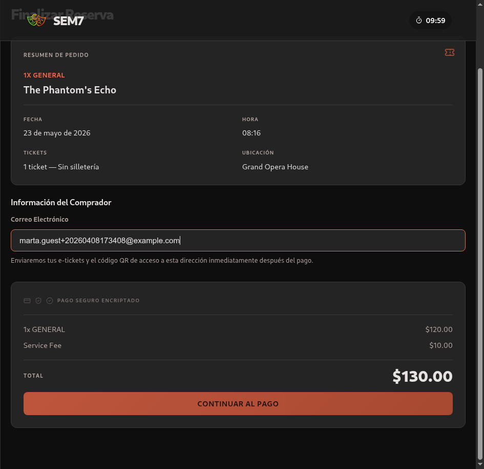 Marta clicks on tarjeta del evento 'The Phantom's Echo'