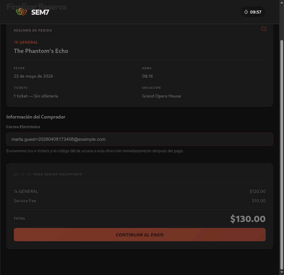 Marta ingresa el correo 'marta.guest+20260408173408@example.com' en el checkout